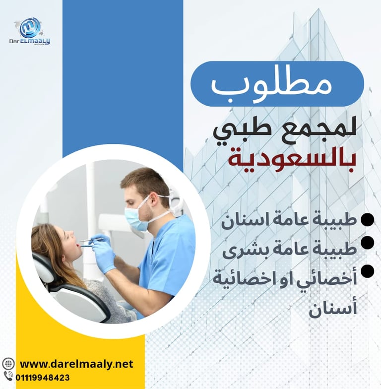 #دار_المعالى #وظائف_طبية #السعودية #وظائف_أسنان #طبيبة_بشرية #فرص_سفر #توظيف_طبي #خليجية